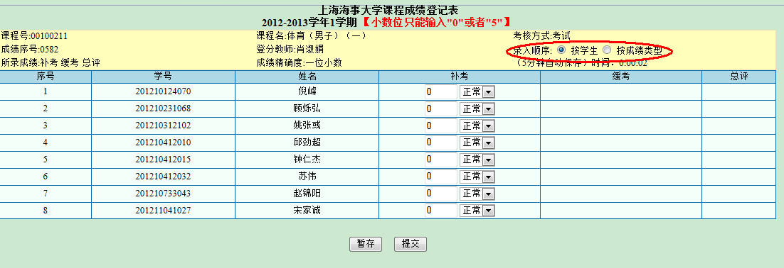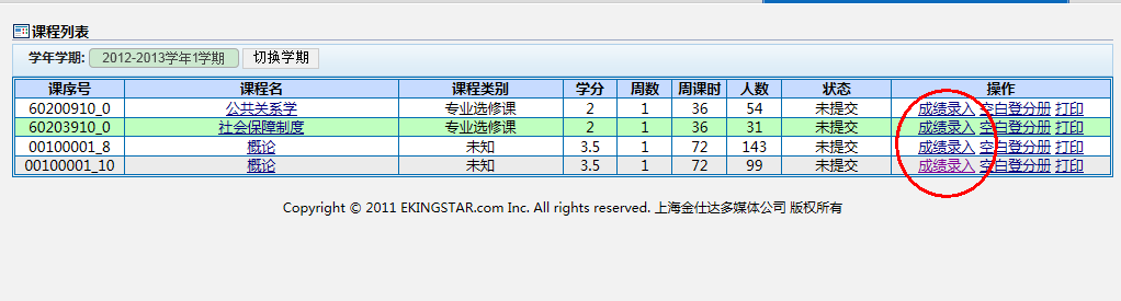 如果此时出现的学生名单与您手中的成绩登记表的名单不符,请马上与教务信息管理中心联系(021-38284272)。